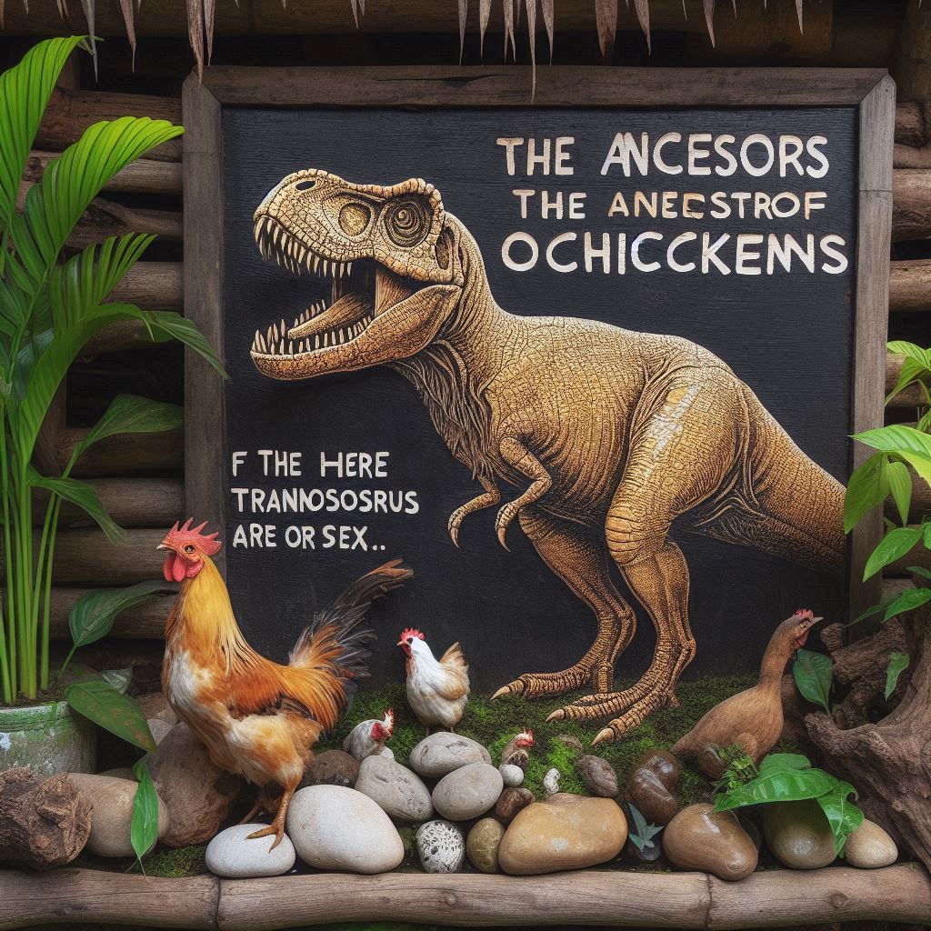 닭은 육식 공룡인 티라노사우루스 렉스와 같은 공룡들로부터 진화한 것으로 알려져 있습니다. 현대 조류들은 공룡의 후손으로 간주되며, 화석 기록과 유전자 분석을 통해 입증되었습니다. 닭의 직접적인 조상은 야생의 적갈색 정글고기 (Red Junglefowl, 학명: Gallus gallus)로 알려져 있습니다. 주로 동남아시아에 서식하는 작은 닭 종으로, 현대의 가금류들과 매우 밀접한 관련이 있습니다. 닭은 오랜 역사를 거쳐 인류와 밀접하게 협력해 온 가축 중 하나로, 다양한 문화적 의미와 식량 자원으로 중요한 역할을 하고 있습니다.